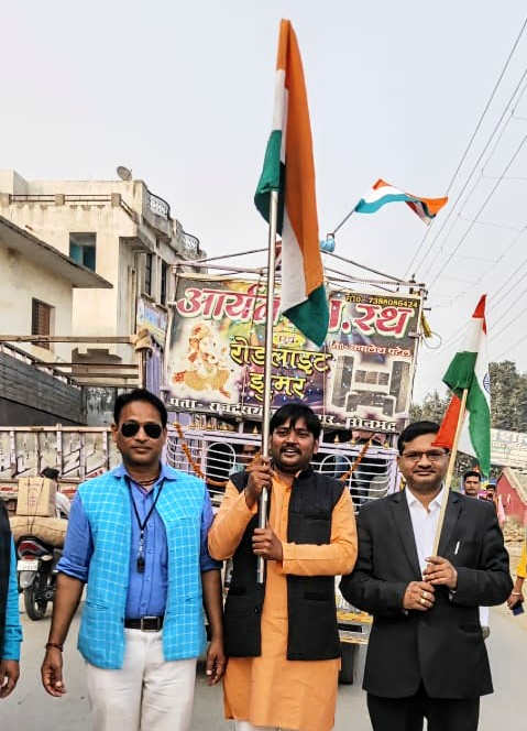 नगर में एक नई चेतना का संचार साफ नजर आया। व्यापारी दुकानों से बाहर निकल कर तिरंगा यात्रा देख रहे थे। नगर भ्रमण के दौरान सड़क की दोनों पटरियों पर लोग खड़े यात्रियों का उत्साहवर्धन कर रहे थे। इसमें अधिवक्ता, अध्यापक, व्यापारी, किसान, मजदूर समेत समाज के विभिन्न वर्गों के लोग सहभागी बने। आयोजित तिरंगा यात्रा में प्रवेश, हर्ष अग्रवाल , नंदलाल जी , ब्रजेश सिंह, पंकज, आलोक, सत्या रमण, कीर्तन, योगेश, दयाशंकर, कृष्ण मुरारी गुप्ता, नीरज सिंह, हर्षवर्धन केसरवानी समेत सैकड़ो नागरिक उत्साह के साथ तिरंगा लिए हुए उदघोष के बीच भ्रमण किए। यात्रा के आगे आगे भारतमाता का भव्यता के साथ सजा हुआ रथ आकर्षण के केंद्र में था ।
