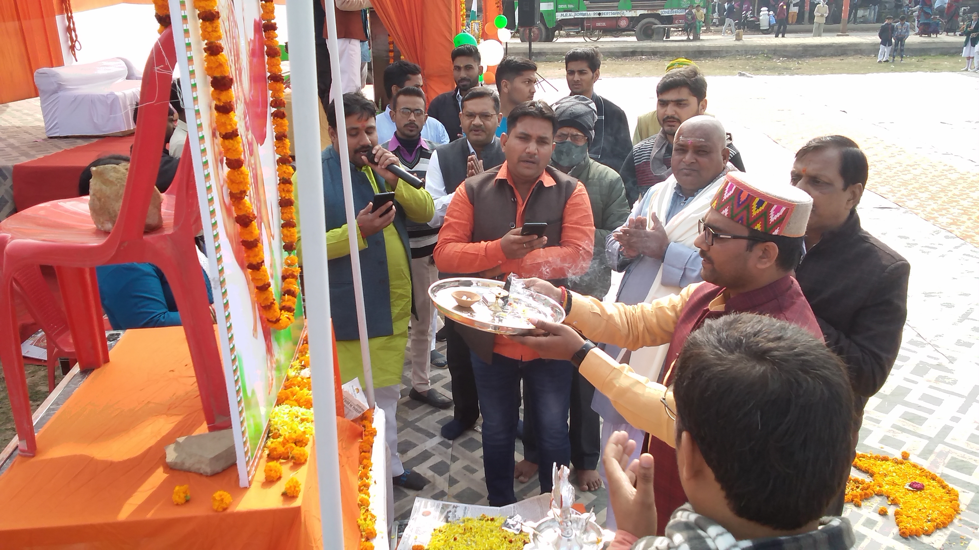 - भारत माता की पूजन और आरती से आरंभ हुआ कार्यक्रम।