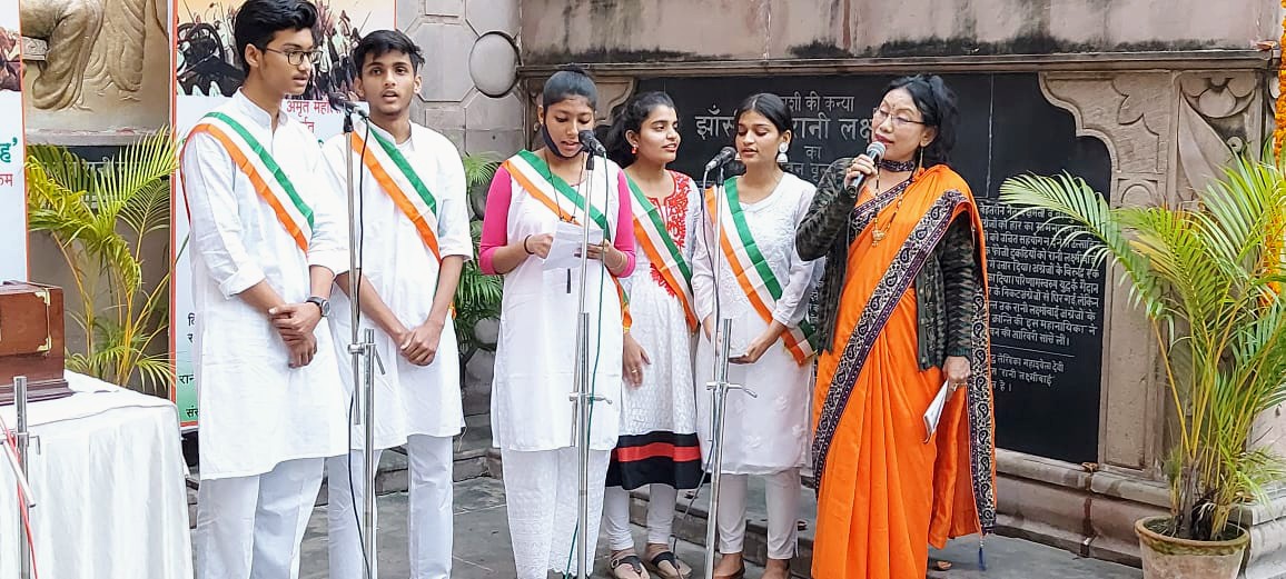 इसके अंतर्गत रानी लक्ष्मीबाई स्मारक, भदैनी- अस्सी पर अपराह्न 4:00 बजे से लिटिल फ्लावर हाउस नगवां, कबीरनगर एवं ककरमत्ता स्कूल के बच्चों व अध्यापकों द्वारा वन्देमातरम का गायन व देशभक्ति पर आधारित गीत प्रस्तुत किया गया तथा रंगोली बनाई गयी।