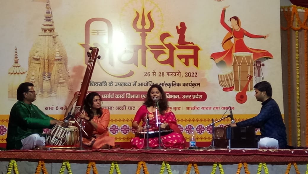 वाराणसी। सोमवार को धर्मार्थ कार्य एवं संस्कृति विभाग, उत्तर प्रदेश द्वारा महाशिवरात्रि के उपलक्ष्य में आयोजित सांस्कृतिक कार्यक्रम शिवार्चन का आयोजन अस्सी घाट पर आयोजित किया गया। कार्यक्रम में प्रथम प्रस्तुति विशाल कृष्ण द्वारा कथक नृत्य से आरम्भ हुआ जिसमें शिव पंचाक्षर स्त्रोतम, पारंपरिक कथक, डिमिग डिमिग डमरू कर बाजे एवं समापन होरी से किया गया।