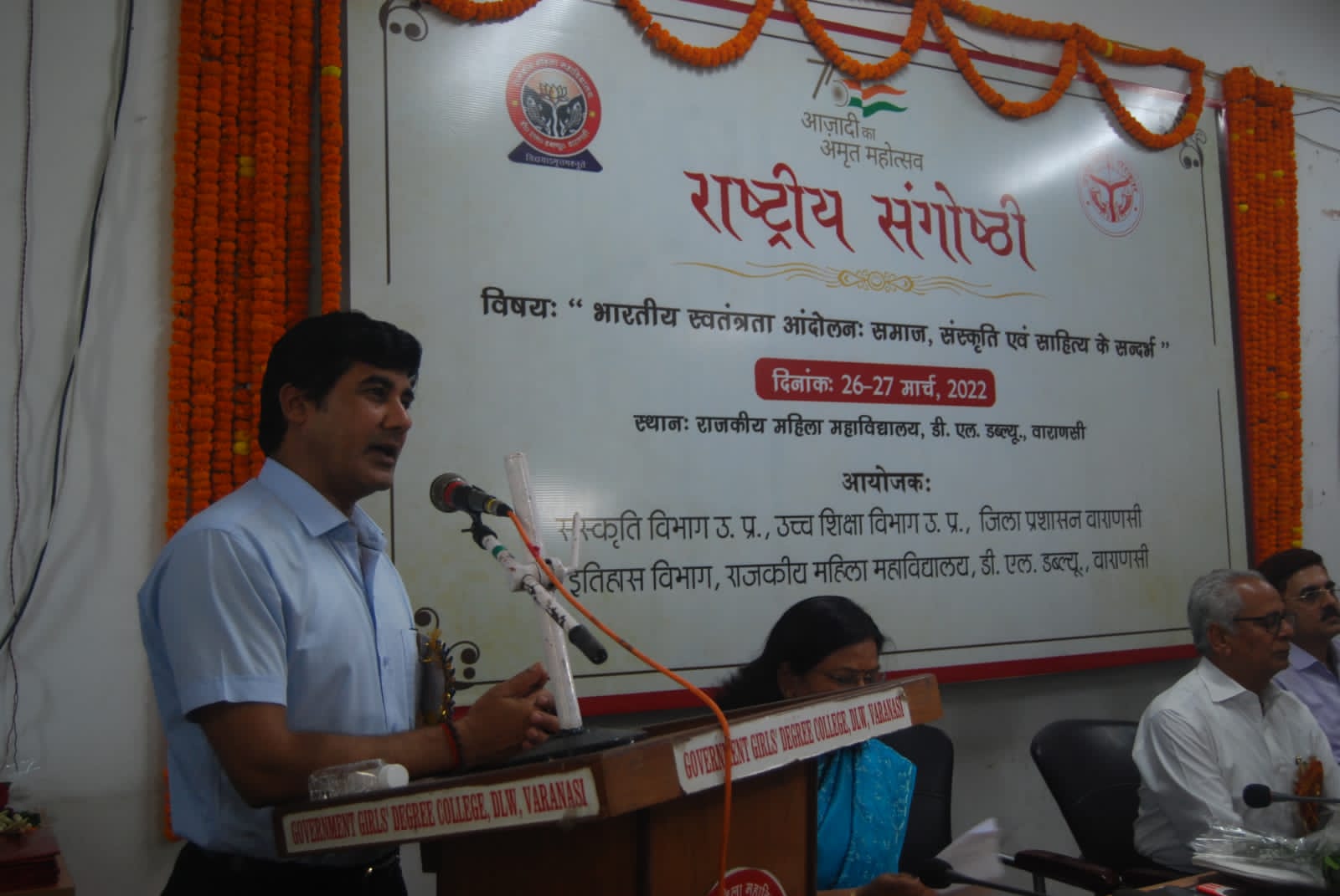 वाराणसी। शनिवार को डी. एल. डब्ल्यू स्थित राजकीय महिला महाविद्यालय में संस्कृति विभाग, उच्च शिक्षा विभाग, जिला प्रशासन व इतिहास विभाग एवं राजकीय महिला महाविद्यालय, डी.एल.डब्ल्यू. वाराणसी के संयुक्त तत्त्वावधान में दो दिवसीय राष्ट्रीय संगोष्ठी “भारतीय स्वतंत्रता आन्दोलन, समाज, संस्कृति और साहित्य के सन्दर्भ का शुभारंभ हुआ। वही समारोह का उद्घाटन मुख्य अतिथि प्रो० अवधेश प्रधान, काशी हिन्दू विश्वविद्यालय द्वारा हुआ। साथ ही कार्यक्रम में मुख्य रूप से इतिहास विभाग, काशी हिन्दू विश्वविद्यालय के प्रो० डॉ० प्रवेश भारद्वाज ने संगोष्ठी की गरिमा बढ़ाई।