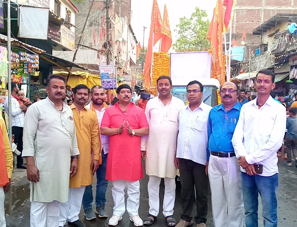 कलश शोभायात्रा में नगर के सभी वर्ग के लोग भगवान भोलेनाथ का जयकारा लगाते हुए हाथों में भगवा ध्वज लिए गगनभेदी उद्घोष कर रहे थे।