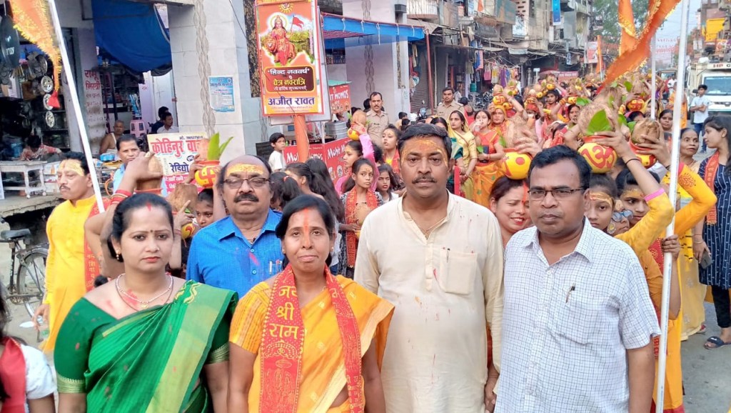 - भगवा ध्वज लिए कलश यात्रा में शामिल हुए शिव भक्त
