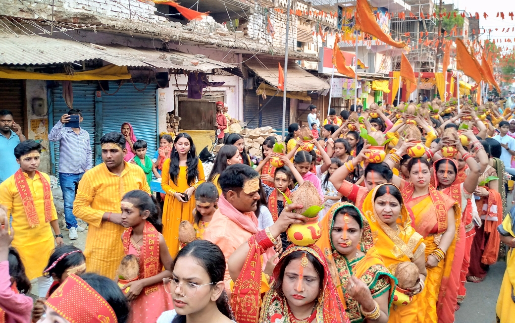 - भगवा ध्वज लिए कलश यात्रा में शामिल हुए शिव भक्त