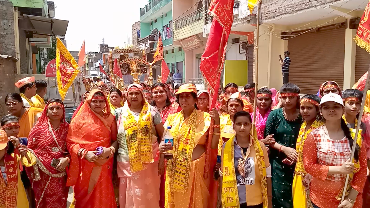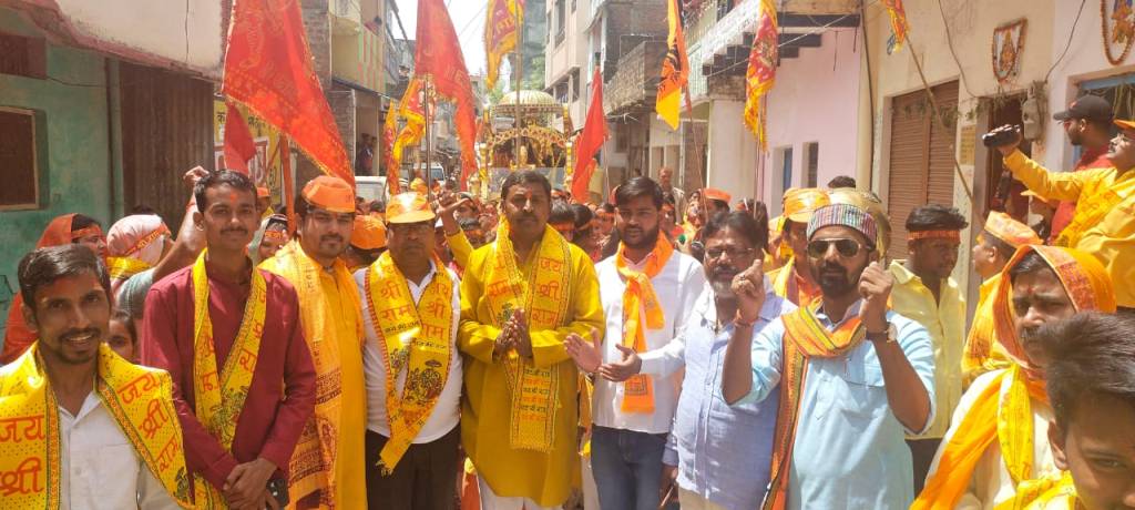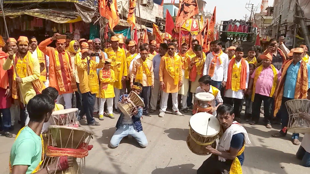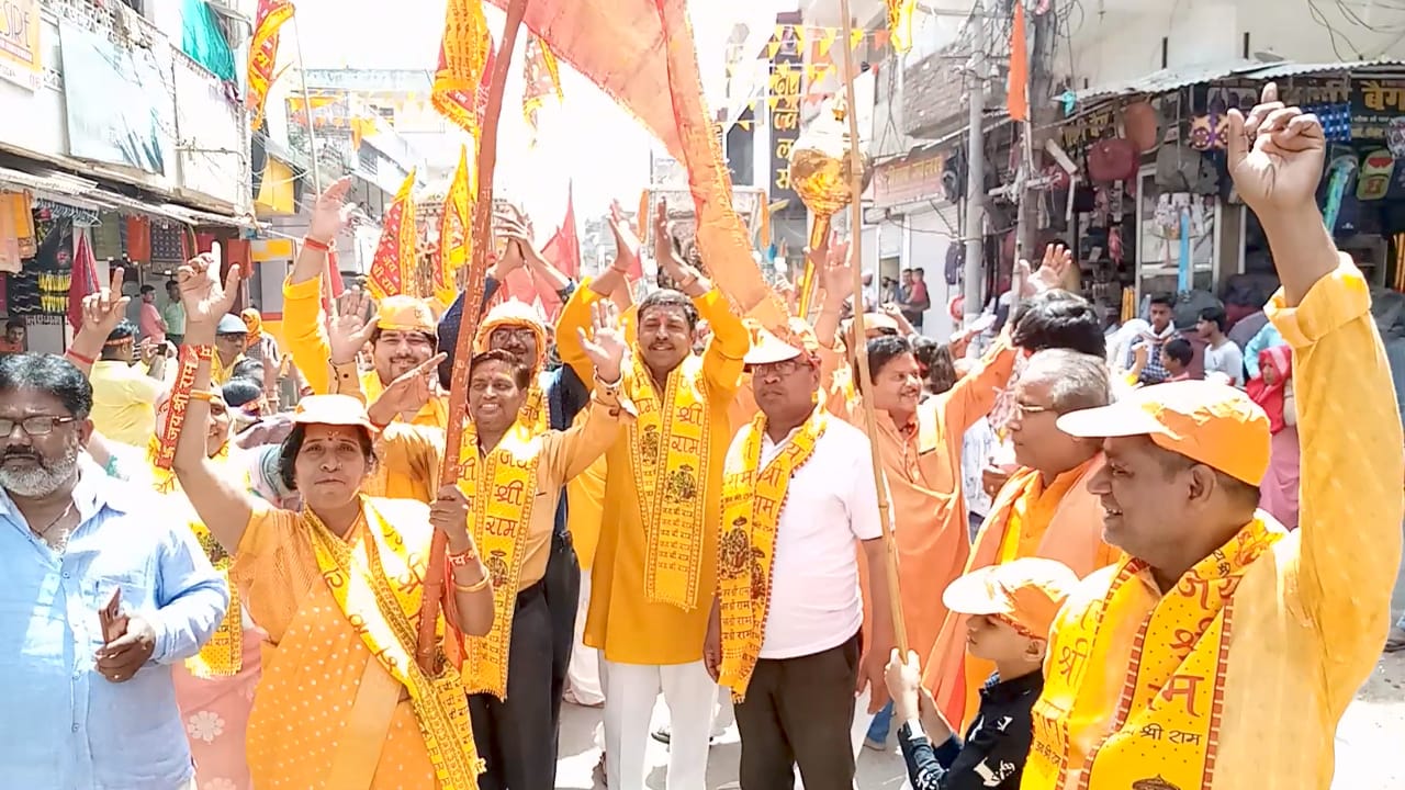 वही यात्रा के दौरान भक्तजन हाथ में भगवा ध्वज लिए प्रभु श्री राम, बजरंगबली, हनुमान जी का जयकारा लगाते हुए चल रहे थे तथा दूसरी ओर भक्तिमय भजन की धुन पर स्त्रियां युवतिया,युवक थिरक रहे थे, ध्वज यात्रा के दौरान रथ पर बैठे हुए मर्यादा पुरुषोत्तम राम, माता जानकी एवं राम भक्त हनुमान के स्वरूप का दर्शन जहां नगर वासियों ने किया वहीं कुछ लोगों ने उनकी आरती भी उतारी। यह ध्वज यात्रा संपूर्ण नगर में भ्रमण करते हुए पुनः संकट हरण श्री सिद्ध हनुमान मंदिर पर जाकर संपन्न हुई।