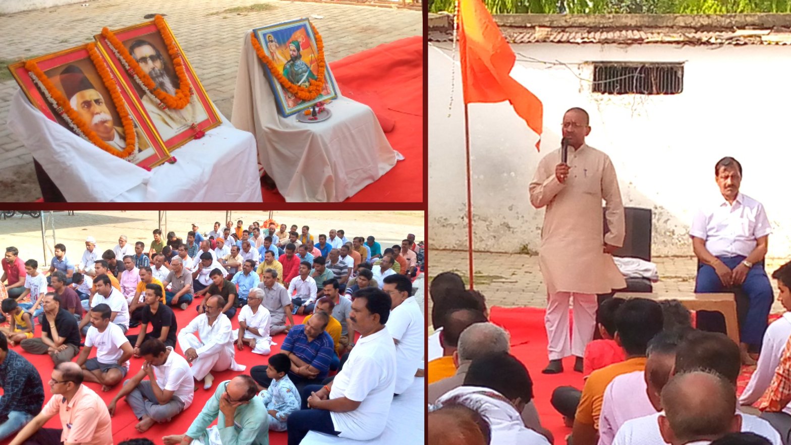 सोनभद्र। राष्ट्रीय स्वयंसेवक संघ सोनभद्र द्वारा रविवार को सोनभद्र नगर स्थित रामलीला मैदान में हिंदू साम्राज्य दिवस का उत्सव बहुत ही हर्षोल्लास व धूमधाम के साथ मनाया गया। कार्यक्रम मे मंचासीन जनपद सोनभद्र के जिला संघचालक हर्ष अग्रवाल व जिला कार्यवाह बृजेश सिंह रहे। बौद्धिक उद्बोधन में बृजेश सिंह ने कहा कि, राष्ट्रीय स्वयंसेवक संघ के 6 उत्सव में द्वितीय उत्सव हिंदू साम्राज्य दिवस है। हिंदू साम्राज्य दिवस ज्येष्ठ शुक्ल त्रयोदशी को मनाया जाता है। इसी दिन शिवाजी महाराज मुगलों को परास्त कर लौटे थे और उनका मराठा शासक के रूप में रायगढ़ के किले पर राज्याभिषेक हुआ था हिन्दू ह्रदय सम्राट व मराठा गौरव की उपाधि से अंलकृत पश्चिम में भारतीय गणराज्य के महानायक छत्रपति शिवाजी का जन्म 19 फरवरी 1630 को पुणे के जुनार स्थित शिवनेरी दुर्ग में शाहजी भोंसले और माता जीजाबाई के घर हुआ था। छत्रपति शिवाजी महाराज ने 340 साल पहले स्वराज्य, स्वधर्म, स्वभाषा और स्वदेश के पुनरुत्थान के लिये जो कार्य किया है, उसकी तुलना नहीं हो सकती। उनका राज्याभिषेक एक व्यक्ति को राजसिंहासन पर बिठाने तक सीमित नहीं था।