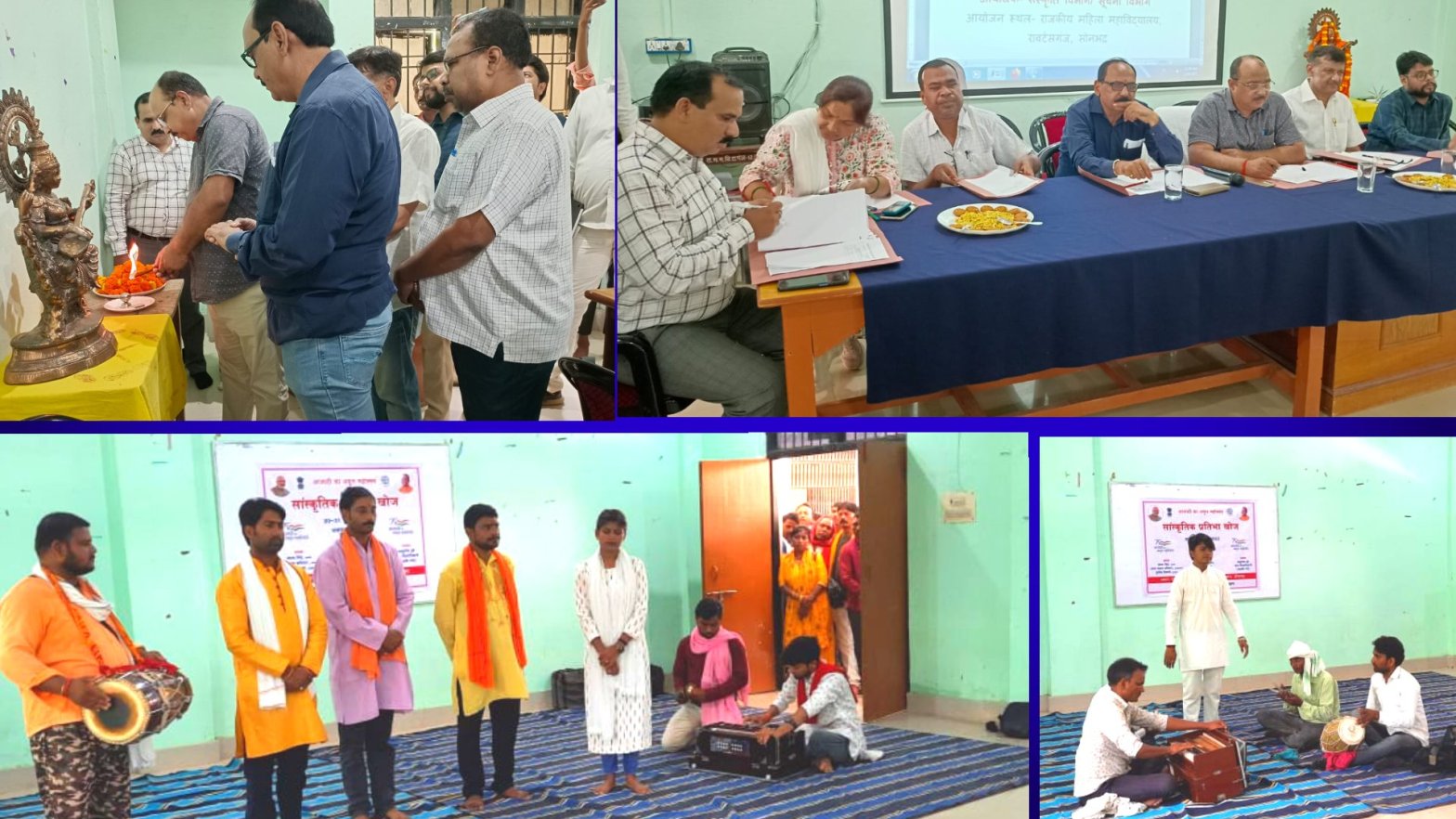 सोनभद्र। आजादी के अमृत महोत्सव के अन्तर्गत छपका स्थित राजकीय महाविद्यालय में दो दिवसीय आयोजित ‘सांस्कृतिक प्रतिभा खोज’ कार्यक्रम के प्रथम दिन का शुभारंभ अपर जिलाधिकारी (नमांमि गंगे) आशुतोष दूबे, प्राचार्य वन्दना सिंह, प्रभारी जिला सूचना अधिकारी राजेश कुमार खैरवार, अपर जिला सूचना अधिकारी विनय कुमार सिंह, विजय शंकर चतुर्वेदी, दीपक कुमार केसरवानी, सुनील तिवारी, अजय प्रताप कटियार नामित सदस्य ने मां सरस्वती की प्रतिमा पर माल्यार्पण कर दीप प्रज्वलित किया।