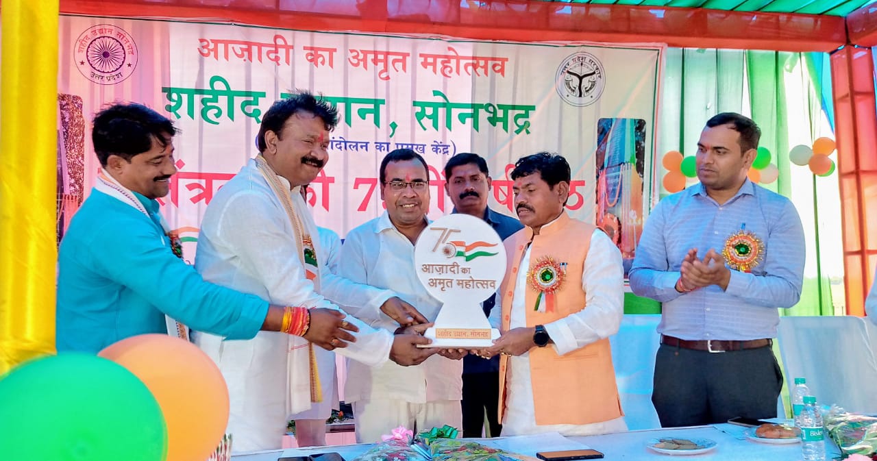 घोरावल के विधायक अनिल कुमार मौर्य ने कहा कि आज राष्ट्रीय पर्व त्योहार की तरह मनाया जा रहा है। अपना दल के जिलाध्यक्ष सत्य नारायण पटेल ने कहा कि हम सब गौरवशाली हैं कि इस ऐतिहासिक स्थल पर आजादी की 75 वीं वर्षगांठ मना रहे हैं।