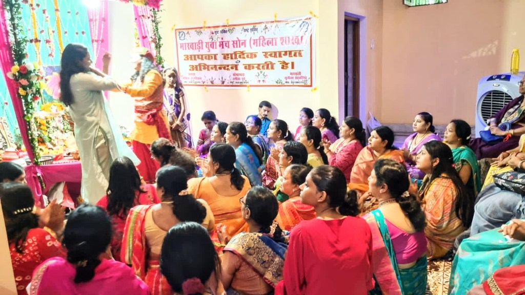 वही कार्यक्रम में सुन्दर भजन सुनकर भक्तगण भावविभोर होकर झूमने लगे। इस अवसर पर मुख्य रूप से महिला मंच की अध्यक्ष अंकिता केजरीवाल, मंत्री सुनिता सावरिया, सदस्य सुमन केजरीवाल, ऊषा जालान, सुनिता खेतान, शिला जैन, अनिता थर्ड सहित आदि लोग उपस्थित रहे।