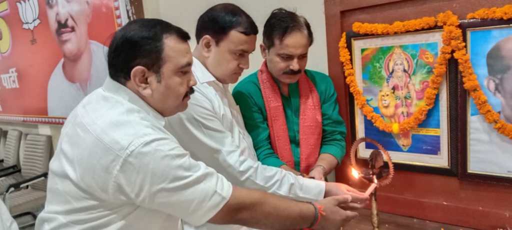 सोनभद्र। भाजपा ने निकाय चुनाव की ओर तेजी से कदम बढ़ा दिया है। 17 सितंबर को प्रधानमंत्री नरेन्द्र मोदी के जन्मदिन से शुरु होने वाले सेवा पखवाड़ा के माध्यम से बूथ स्तर तक संगठन को सक्रिय करने जा रही है। इसी को लेकर पार्टी द्वारा आगामी महीनों के कार्यक्रमों की रूपरेखा बनाने हेतु सोमवार को भाजपा जिलाध्यक्ष अजीत चौबे की अध्यक्षता में पुसैली स्थित पार्टी के जिला कार्यालय पर बैठक का आयोजित किया गया। जिसमें बतौर मुख्यअतिथि के रूप में काशी क्षेत्र के क्षेत्रीय महामंत्री व सोनभद्र के जिला प्रभारी अशोक चौरसिया रहे। बैठक का शुभारंम्भ पं0 दीनदयाल उपाध्याय व डॉ0 श्यामा प्रसाद मुखर्जी के चित्र पर मुख्यअतिथि अशोक चौरसिया व भाजपा जिलाध्यक्ष अजीत चौबे द्वारा दीप प्रज्वलित व पुष्प अर्पित कर किया।