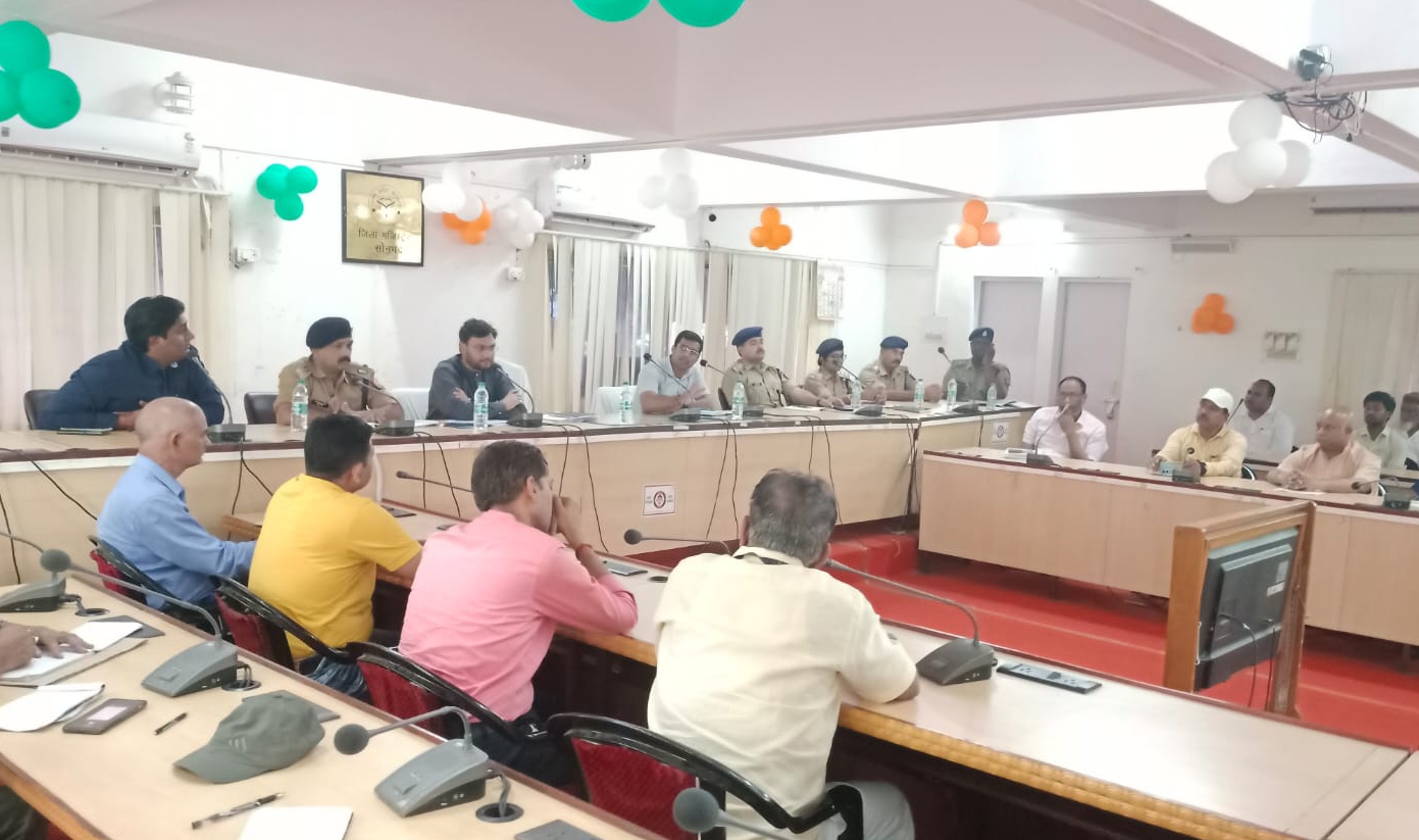 सोनभद्र। प्रभारी जिलाधिकारी/मुख्य विकास अधिकारी सौरभ गंगवार ने शनिवार को कलेक्ट्रेट सभागार में आगामी दिनों में आने वाले नवरात्र, दुर्गा पूजा, दशहरा, ईद-ए-मिलाद (बारावफात) के दौरान पारस्परिक सौहार्द एवं शांति व्यवस्था बनाये रखने व शांतिपूर्ण तरीके से त्यौहार को सम्पन्न कराने के लिए पीस कमेटी के साथ समन्वय बैठक की। बैठक के दौरान विभिन्न स्थानों पर स्थापित होने वाले पूजा पाण्डाल के सदस्य व पदाधिकारियों से नवरात्र, दुर्गा पूजा, दशहरा को सम्पन्न कराने में आने वाले समस्या से अवगत कराने के साथ ही अपने-अपने सुझाव पेश करने की अपील की गयी।