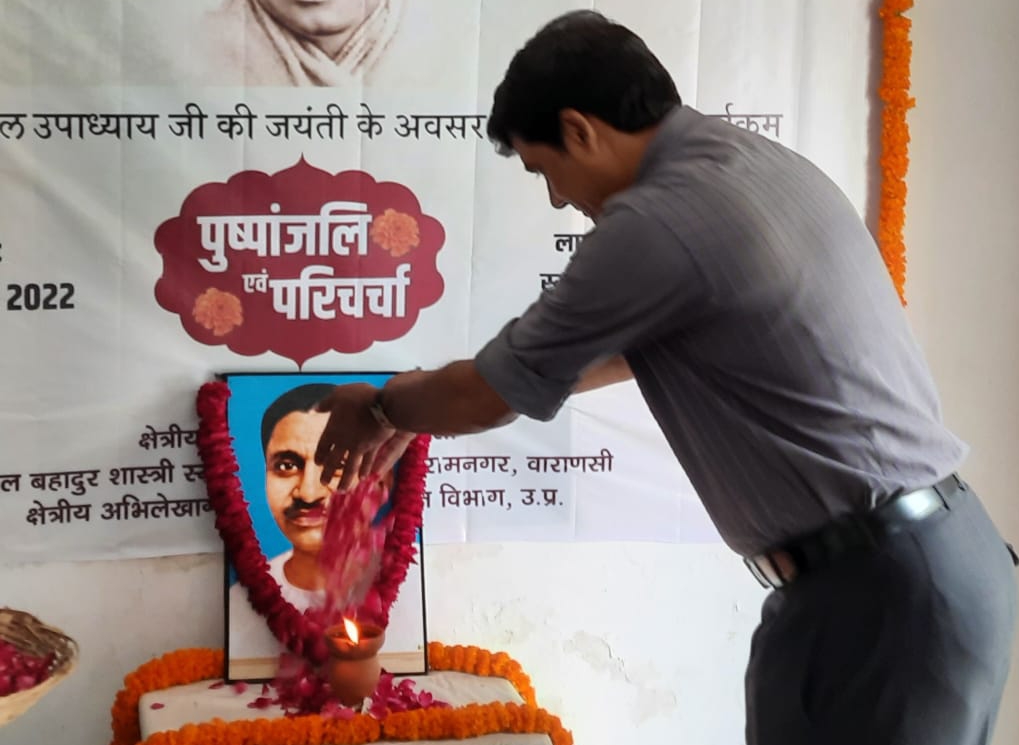 रामनगर, वाराणसी। “पंडित दीन दयाल उपाध्याय जयंती” के अवसर पर रविवार को लाल बहादुर शास्त्री स्मृति भवन संग्रहालय, क्षेत्रीय पुरातत्व इकाई एवम क्षेत्रीय अभिलेखागार के सयुक्त तत्वाधान में रामनगर स्थित लाल बहादुर शास्त्री स्मृति भवन संग्रहालय में पुष्पांजलि एवम् परिचर्चा के कार्यक्रम का आयोजन किया गया।