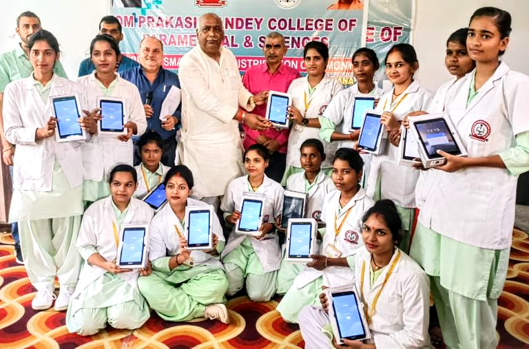 सोनभद्र। उत्तर प्रदेश सरकार द्वारा चलाए जा रहे मुफ्त स्मार्टफोन एवं टेबलेट योजना के तहत सोमवार को जिला मुख्यालय राबर्ट्सगंज स्थित ओम प्रकाश पांडे कॉलेज ऑफ पैरामेडिकल एंड साइंसेज के सभागार में राज्यसभा सांसद रामसकल के मुख्य आतिथ्य में कार्यक्रम का आयोजन कर सोलह छात्राओं को निशुल्क टेबलेट का वितरण किया गया।