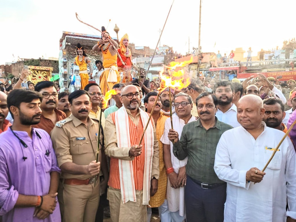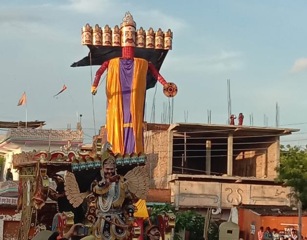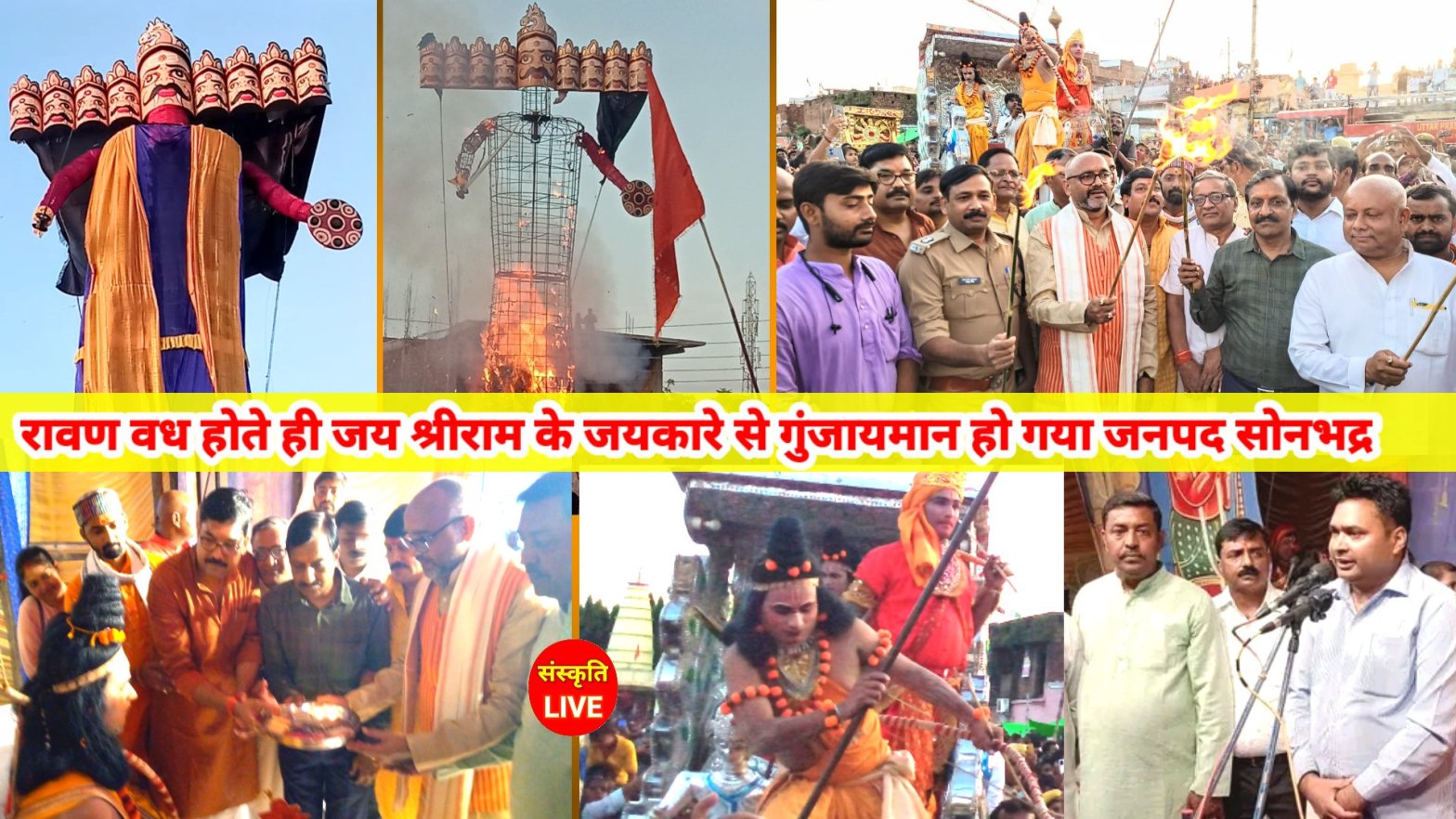 - जिला मुख्यालय राबर्ट्सगंज के रामलीला मैदान में 45 फीट ऊंचे रावण के पुतले का किया गया दहन