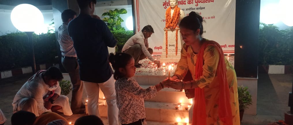 वाराणसी। मुंशी प्रेमचंद की पुण्यतिथि के अवसर पर शनिवार को उनकी जन्मस्थली लमही में क्षेत्रीय सांस्कृतिक केंद्र वाराणसी, संस्कृति विभाग, उत्तर प्रदेश द्वारा पुष्पांजलि व दीपांजलि का आयोजन किया गया। नगर के प्रसिद्ध साहित्यकार व गणमान्य लोगों ने उपन्यास सम्राट की जन्मस्थली पर निर्मित स्मारक परिसर में स्थापित प्रतिमा पर पुष्पांजलि कर श्रद्धा सुमन अर्पित किया। इस क्रम में सुनो मैं प्रेमचंद के रेडियो प्रसारण कार्यक्रम के अन्तर्गत इनकी जीवनी और कहानी का प्रसारण प्रेमचंद मार्गदर्शन केंद्र द्वारा किया गया। शायंकाल स्मारक परिसर श्रद्धा के दीप से आलोकित हो उठा। बेहद सादगी और श्रद्धा के साथ पुण्यतिथि का आयोजन किया गया।
