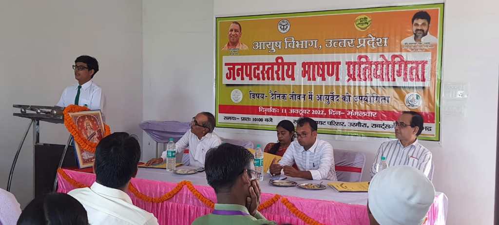 सोनभद्र। जिले में आयुष विभाग द्वारा मनाए जा रहे सप्तम आयुर्वेद दिवस के अवसर पर मंगलवार हमारे दैनिक जीवन में आयुर्वेद की उपयोगिता विषय पर जनपद स्तरीय भाषण प्रतियोगिता का आयोजन जिलाधिकारी व मुख्य विकास अधिकारी के निर्देशन में डायट परिसर और उरमौरा में आयोजित किया गया। वही निर्णायक मंडल में अपर जिलाधिकारी सहदेव मिश्रा, राष्ट्रपति एवं राज्यपाल पुरस्कार प्राप्त सेवानिवृत्त शिक्षक ओम प्रकाश त्रिपाठी एवं क्षेत्रीय आयुर्वेदिक एवं यूनानी अधिकारी डॉ मिलन सिंह रहे।