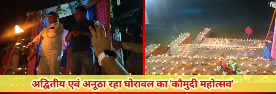 सोनभद्र। जनपद के घोरावल परिक्षेत्र में आयोजित द्विदिवसीय ‘कौमुदी महोत्सव’ अद्वितीय व अनूठा रहा। दूसरे दिन घोरावल नगर प्रकीर्णित ज्योत्सना से गुलजार हो उठा। कार्तिक पूर्णिमा पर बीते दस वर्षों से देव दीपावली पर चली आ रही ‘कौमुदी महोत्सव’ की ज्योति इस बार प्रखरता पर पहुंची। घोरावल के दशमी तालाब के पूरे परकोटे 5051 दीपों के जलाए जाने से जाज्वल्यमान हो उठे।