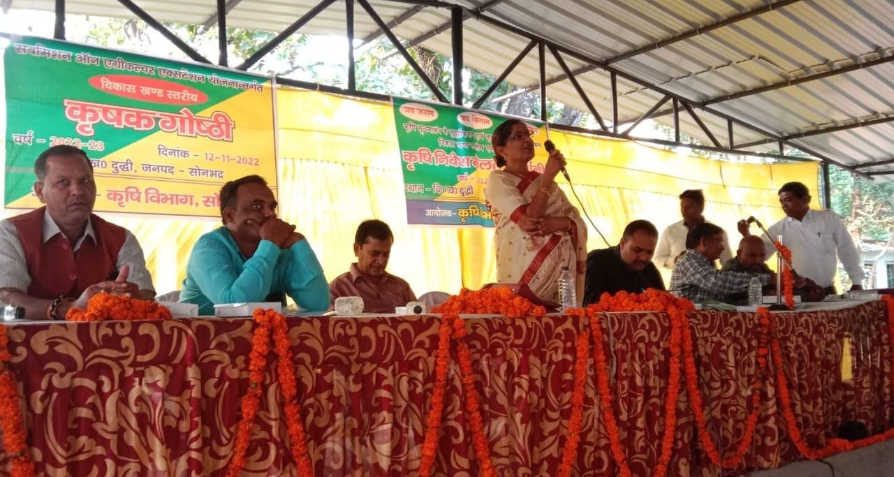 दुद्धी, सोनभद्र। विकासखंड परिसर अंतर्गत क्षेत्र पंचायत सभागार में रवि फसल की अत्याधुनिक औषधि युक्त उन्नत स्वास्थ्य खेती को लेकर कृषि निवेश मेला प्रदर्शनी का आयोजन किया गया जिसमें मुख्य अतिथि रंजना चौधरी ने कहा कि निरोग काया और लंबी जीवन के लिए उन्नत जैविक खेती के द्वारा स्वस्थ समाज का निर्माण किया जा सकता है।