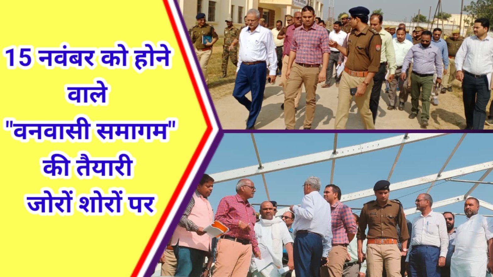 सोनभद्र। सेवा समर्पण संस्थान से संबद्ध अखिल भारतीय वनवासी कल्याण आश्रम सोनभद्र के द्वारा आयोजित सेवा कुंज आश्रम के बिरसा मुंडा वनवासी विद्यापीठ के प्रांगण में 15 नवंबर को जनजाति गौरव दिवस पर होने वाले “बनवासी समागम” कार्यक्रम को मूर्त रूप देने के लिए शुक्रवार को मंडलायुक्त विंध्याचल मंडल योगेश्वर राम मिश्रा कार्यक्रम स्थल पहुंचे और औचक निरीक्षण किया।