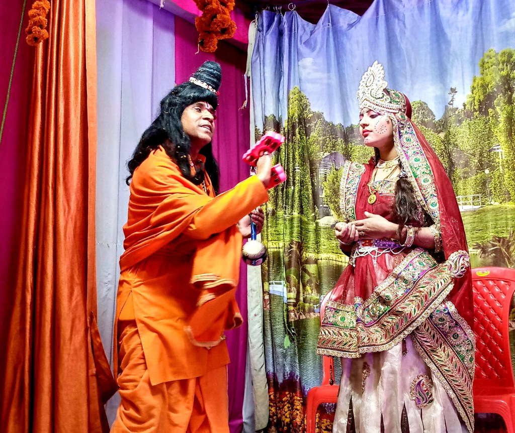 वही कथा के प्रसंग के अनुसार सुंदर झांकी भी सजाई गई जिसमें नारद मुनि का वेश ज्ञानेश जी, भगवान श्रीकृष्ण, विदुर रानी, शिव पार्वती तथा अर्जुन की वेश में सजी शिवानी पांडे, शिवांगी और श्रेया केसरी ने वहां उपस्थित लोगों का मन मोह लिया। दूसरे दिन की कथा का समापन मुख्य यजमान रतन लाल गर्ग और उनकी धर्मपत्नी अनारकली देवी के व्यासपीठ और श्रीमद् भागवत कथा पुराण की पूजन आरती के साथ किया गया।
