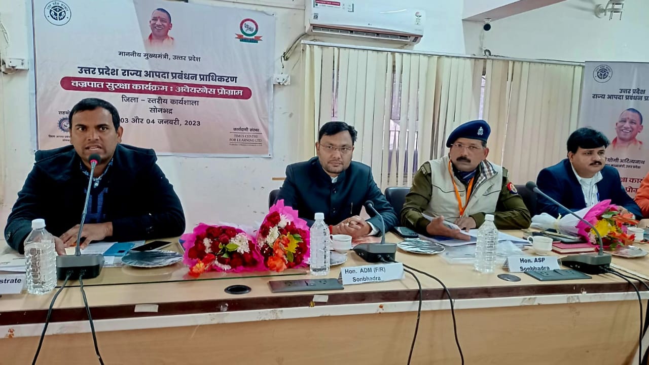 उन्होंने वज्रपात संभावित क्षेत्रों मे जन जागरूकता अभियान के साथ साथ वज्रपात के बारे सटीक पूर्वानुमान को जन जन तक पहुचाने पर बल दिया। टाइम्स सेंटर फॉर लर्निंग लिमिटेड के तकनीकी विशेषज्ञ एवं मास्टर ट्रेनर मनोज कुमार सिंह ने वज्रपात के कारण, वज्रपात के लक्षण, रोकथाम एवं बचाव के उपायों के साथ साथ पूर्व चेतावनी देनी वाली दामिनी एप की भूमिका के बारे में विस्तार से बताया। उन्होंने बताया कि लोग बिजली के खंभे के आसपास खड़े हो जाते हैं। यहां भी खतरे की संभावना ज्यादा रहती है। उन्होंने कहा है कि लोगों को यह समझाया जा रहा है कि आकाशीय बिजली आने पर पक्की छतों के नीचे चले जाएं। जहां पर खतरा सबसे कम होगा। प्रशिक्षक डॉक्टर सतेन्द्र कुमार ने आपदा प्रबंधन, राज्य एवं जिला आपदा प्रबंधन प्राधिकरणों की भूमिका एवं अन्य आपदाओं के रोकथाम एवं बचाव के उपायों के बारे में विस्तार से बताया। कार्यक्रम जिला आपदा प्रबंधन प्राधिकरण के सहयोग से आयोजित हो रहा है एवं जिला आपदा सलाहकार पवन शुक्ला द्वारा इस कार्यक्रम में संचालित 3 प्रक्रिया (जिला स्तर, सभी ब्लॉक स्तर एवं समस्त ग्राम पंचायत स्तर पर ) जागरूकता अभियान चलाये जाने हेतु आगामी योजना की जानकारी देते हुए कार्यक्रम को सफल बनाने में विशेष सहयोग रहा। इस कार्यक्रम में जिला स्तर के अधिकारियों के साथ समस्त उप जिलाधिकारी, मुख्य चिकित्सा अधीक्षक, जिला विद्यालय निरीक्षक, जिला बेसिक शिक्षा अधिकारी, जिला पूर्ति अधिकारी, होमगार्ड्स के जिला कमांडेंट, सिंचाई एवं लोक निर्माण विभाग के अधिशासी अभियंता, अपर जिला सूचना अधिकारी, जिला सूचना एवं विज्ञान अधिकारी, प्रशासनिक अधिकारी कलेक्ट्रेट, सामुदायिक एवं प्राथमिक स्वास्थ्य केंद्रों के अधिकारी तथा प्रत्येक तहसील के 3-3 लेखपालों सहित पुलिस और प्रशासन के अधिकारियों को आकाशीय बिजली के प्रति लोगों को जागरूक करने के लिए अहम जानकारी दी गई है। माननीय मुख्यमंत्री के दिशा निर्देशों के क्रम में उत्तर प्रदेश सरकार ने उत्तर प्रदेश राज्य में वज्रपात के प्रति सबसे संवेदनशील तीन जिलों सोनभद्र, मिर्जापुर एवं प्रयागराज में सरकारी अधिकारियों और समुदायों की क्षमता को विकसित के लिए सक्रिय पहल के फलस्वरूप उत्तर प्रदेश राज्य आपदा प्रबंधन प्राधिकरण ने “वज्रपात सुरक्षा जन जागरूकता कार्यक्रम” को निष्पादित करने के लिए टाइम्स सेंटर फॉर लर्निंग लिमिटेड, जो कि टाइम्स समूह की कंपनी है, के साथ अनुबंध पर हस्ताक्षर किए हैं। पायलट प्रोजेक्ट के तहत अगले 2 से 3 महीनों में सोनभद्र, मिर्जापुर एवं प्रयागराज में जिले, ब्लॉक एवं ग्राम स्तर पर वृहद कार्यशालाएं आयोजित करके 45 प्रखंडों के लगभग 4000 अधिकारियों और सबसे प्रभावित सोनभद्र जिले के 637 ग