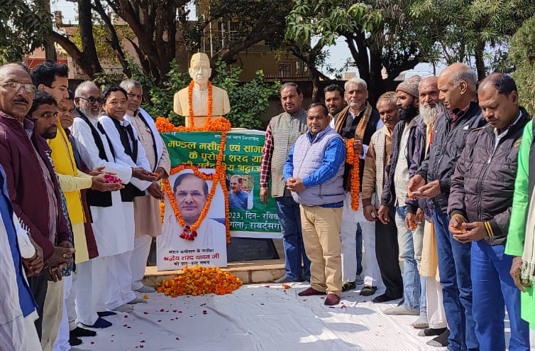 सोनभद्र। जनता दल यू के पूर्व राष्ट्रीय अध्यक्ष व कैबिनेट मंत्री शरद यादव जी को रविवार को चौधरी चरण सिंह सिंचाई डाक बंगला में श्रद्धांजलि दी गई। श्रद्धांजलि सभा की अध्यक्षता रामभरोसे सिंह ने किया एवं संचालन अतुल प्रताप पटेल ने किया। इस अवसर पर उपस्थित वक्ताओं ने कहा कि शरद यादव लोकसभा में 1974 से लगातार सात बार तथा राज्यसभा में चार बार प्रतिनिधित्व किया !