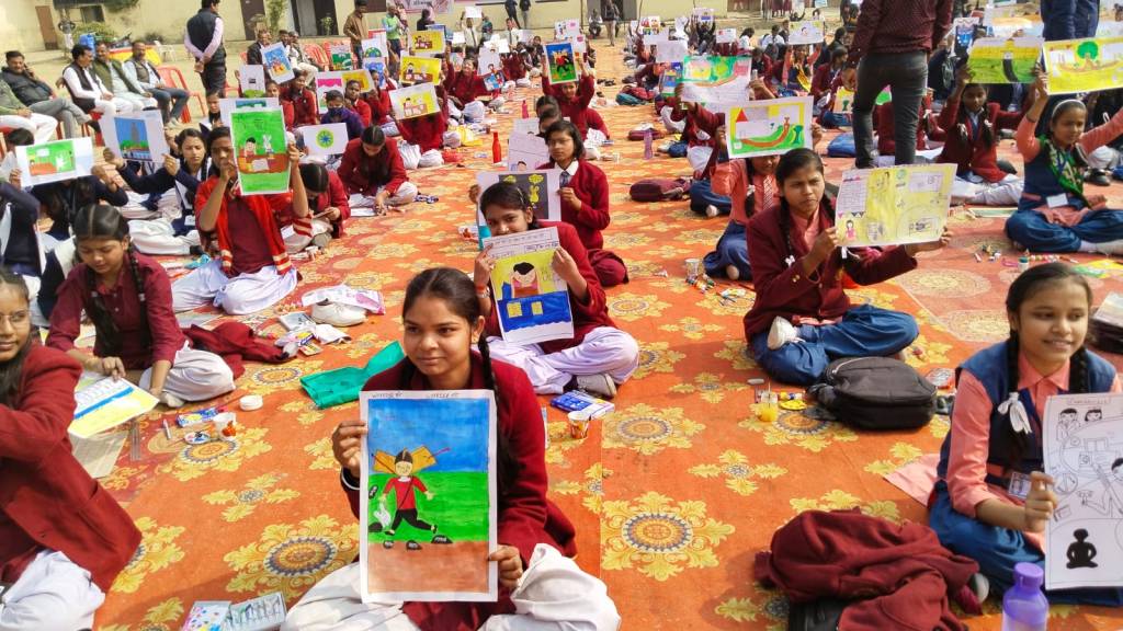सोनभद्र। प्रधानमंत्री नरेंद्र मोदी की “परीक्षा पे चर्चा” से पूर्व शुक्रवार को राबर्ट्सगंज स्थित राजा शारदा महेश इण्टर कालेज में भव्य आर्ट एवं पेंटिंग एग्जाम वॉरियर प्रतियोगिता का आयोजन हुआ। कार्यक्रम में सोनभद्र जनपद के छोटे-बड़े 18 विद्यालयों से जुड़े 460 बच्चों ने सहभागिता निभाई। इस प्रतियोगिता में बच्चों ने अपनी रचनात्मकता कला का प्रदर्शन किया एवं परीक्षा पर चर्चा से संबंधित कई कलाकृतियां बनायीं।