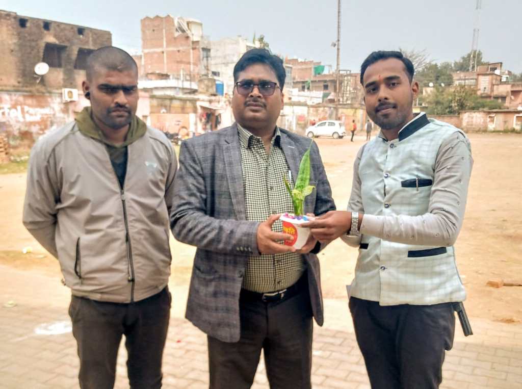 - युवा पत्रकार हर्षवर्धन ने एसडीएम एवं कोतवाल सहित अन्य लोगो को भेंट किया पौधा