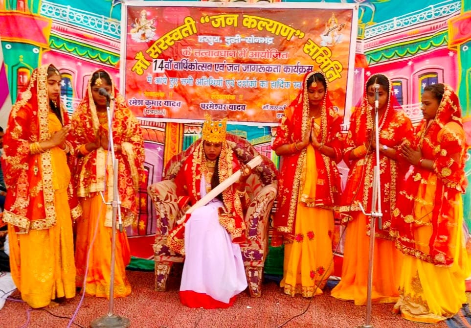 जिसका बोल था जब समय होला कमजोर सहित अन्य गीत तथा नाटक एवं संगीत के माध्यम से लोगों को जागरूक किया गया। एक से बढ़कर एक रंगारंग सांस्कृतिक कार्यक्रमों को देखकर लोग झूमते रहे और जमकर सराहना करते रहे। इसके पूर्व कार्यक्रम का उद्घाटन मुख्य अतिथि संजय कुमार गोंड समाजसेवी एवं युवा उद्यमी वाराणसी तथा विशिष्ट अतिथि क्रय विक्रय समिति दुद्धी के अध्यक्ष रामेश्वर राय सहित अन्य अतिथियों ने मां सरस्वती की प्रतिमा पर धूप अगरबती जलाकर एवं फीता काटकर किया।