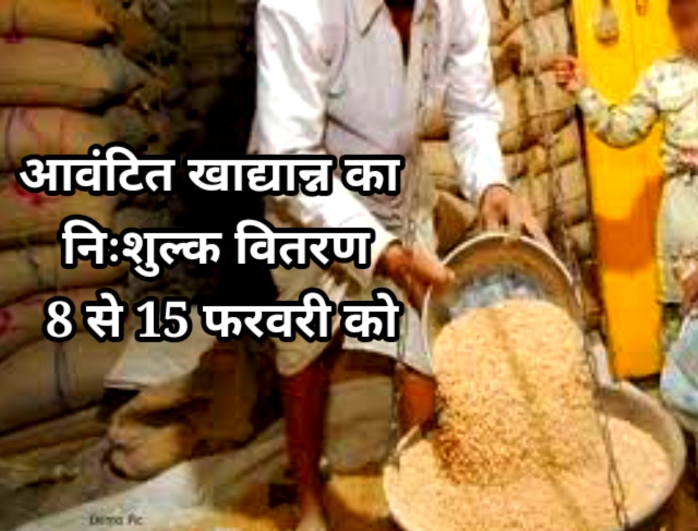 सोनभद्र। जिला पूर्ति अधिकारी सोनभद्र गौरी शंकर शुक्ला ने अवगत कराया है कि आयुक्त खाद्य तथा रसद विभाग उत्तर प्रदेश जवाहर भवन लखनऊ के आदेश के क्रम में निःशुल्क वितरण 2023, 6 फरवरी द्वारा जनपद के अंत्योदय एवं पात्र गृहस्थी कार्ड धारकों को राष्ट्रीय खाद्य सुरक्षा अधिनियम 2013 के अंतर्गत माह जनवरी 2023 के सापेक्ष आवंटित खाद्यान्न का निःशुल्क वितरण एवं अंत्योदय कार्ड धारकों को त्रैमास अक्टूबर-नवंबर दिसंबर 2022 के सापेक्ष चीनी का वितरण माह फरवरी, 2023 में 8 फरवरी से आगामी 15 फरवरी के मध्य कराए जाने के संबंध में निर्देश दिए गए हैं।