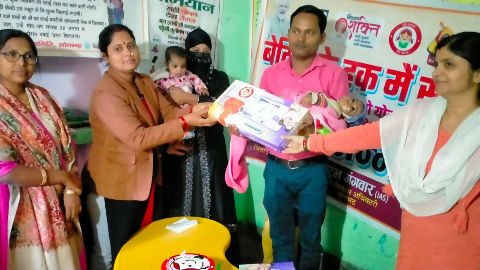 जिसमें कन्या के माताओ के साथ पिता ने भी हिस्सा लिया और कहा कि बेटी है तो कल हैं हम लोग सरकार द्वारा चलाई जा रही इस योजना का सम्मान करते है। इस दौरान ओ आर डब्ल्यू जिला बाल संरक्षण इकाई सोनभद्र से शेषमणि दुबे द्वारा कार्यक्रम में उपस्थित लोगों को बेटीयो की सुरक्षा,शिक्षा एवं सम्मान देने का शपथ भी दिलाया गया और सभी योजनान्तर्गत पात्र लाभार्थियों को कन्या सुमगला योजना से अच्छादित किये जाने हेतु चिन्हित किया गया और केक काट कर उपस्थित कन्याओं के संरक्षक को उपहार स्वरूप में प्रशस्ति पत्र के साथ बेबी किट का वितरण किया गया।