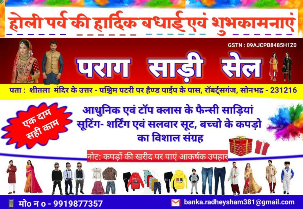 सोनभद्र। जिलाधिकारी चन्द्र विजय सिंह ने जनपद वासियों को होली पर्व की हार्दिक बधाई एवं शुभकामनायें देते हुए कहा है कि 07 मार्च को होलिक दहन व 08 मार्च को होली का पर्व मनाया जायेगा। सभी जनपदवासियों से होली के पर्व को शान्ति पूर्ण व गरिमामय तरीके से मनाये जाने के लिए अपील की गयी है।