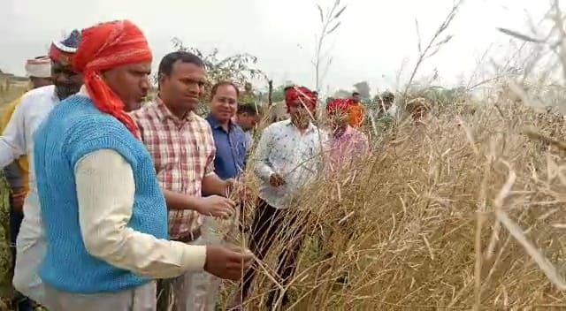 सोनभद्र। जिले में रविवार को हुई भारी बारिस के दौरान कई स्थानों पर पड़े ओलावृष्टि से क्षतिग्रस्त हुई फसलों के मद्देनजर जिलाधिकारी चन्द्र विजय सिंह ने सोमवार को ग्राम पंचायत बभनौली कला के राजस्व ग्राम बभनौली कला एवं महोखर में गेंहू व सरसों सहित अन्य फसलों का खेतों में जाकर स्थलीय निरीक्षण किया। इस दौरान जिलाधिकारी को अपने बीच पाकर किसान व ग्रामीणजन राहत महसूस किया और नुकसान हुए अपने फसल की स्थिति से अवगत कराया।