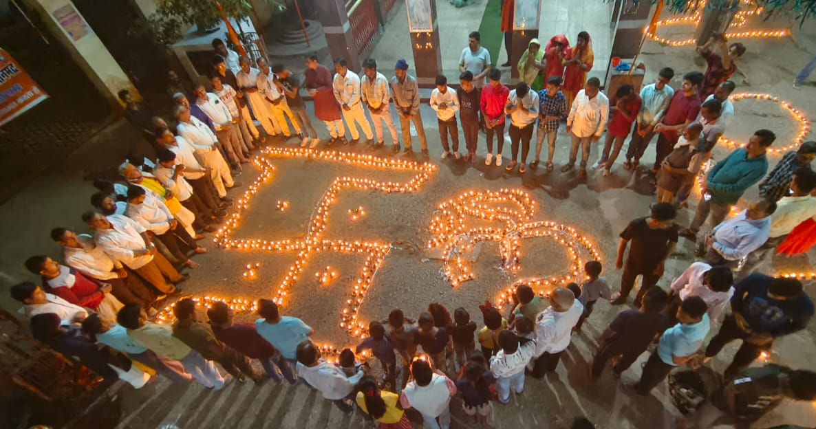 सोनभद्र। रॉबर्ट्सगंज नगर मे स्थित श्री राम जानकी संकट मोचन मंदिर प्रांगण में विश्व हिंदू परिषद द्वारा बुधवार की देर शाम 2080 दीपो से नववर्ष चैत्र शुक्ल प्रतिपदा विक्रम संवत २०८० लिखकर हिंदू नव वर्ष की बधाई दी गई। वही संगठन के कार्यकर्ताओं और आम जनमानस द्वारा जय श्री राम जय हनुमान के गगनभेदी उद्घोष किए गए, जिससे पूरा क्षेत्र राममय हो गया।