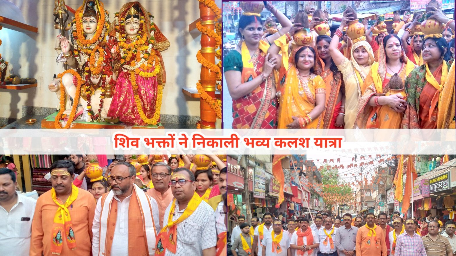 - भगवा ध्वज लिए कलश यात्रा में शामिल हुए शिव भक्त