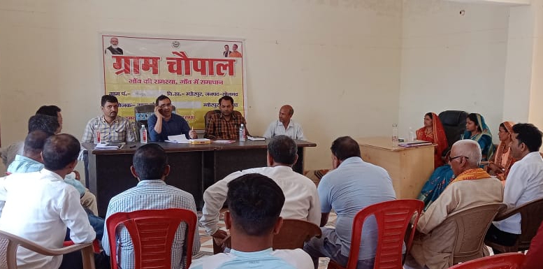 बीजपुर, सोनभद्र। खंड विकास अधिकारी म्योरपुर उमेश सिंह की उपस्थिति में बीजपुर ग्राम पंचायत के पंचायत भवन में शुक्रवार की सुबह 10:00 बजे ग्राम चौपाल का आयोजन किया गया। जिसमें ग्रामीणों को प्रदेश सरकार द्वारा चलाई जा रही विकास की योजनाओं तथा सरकारी लाभ की योजनाओं की जानकारी दिया जाना था तथा ग्रामीणों की समस्याओं को सुनकर उनका समाधान करना भी चौपाल का मुख्य उद्देश्य था।की समस्यासमाधान किया जाना था।