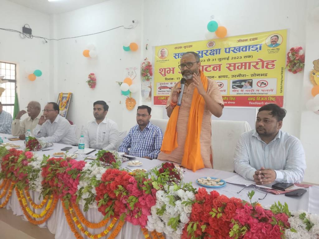 सोनभद्र। सदर विधायक भूपेश चौबे व अपर जिलाधिकारी सहदेव कुमार मिश्रा ने सोमवार को जिला शिक्षा एवं प्रशिक्षण संस्थान में सड़क सुरक्षा पखवाड़ा का शुभारंभ दीप प्रज्जवलित कर व यातायात प्रचार वाहन को हरी झण्डी दिखाकर किया गया, इस अवसर पर समारोह में सड़क दुर्घटना से बचने के उपाय, ट्रैफिक नियमों का पालन करने के बारे में चर्चा की गई।