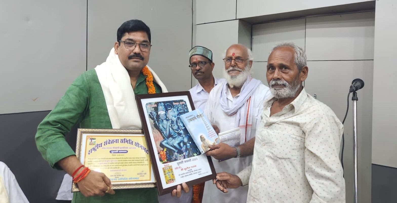 सोनभद्र। संत शिरोमणि गोस्वामी तुलसीदास जी के जयंती के उपलक्ष में जनपद सोनभद्र की नगर पालिका परिषद के सभागार में राष्ट्रीय संचेतना समिति सोनभद्र द्वारा सम्मान एवं विचार गोष्ठी का आयोजन किया गया।
