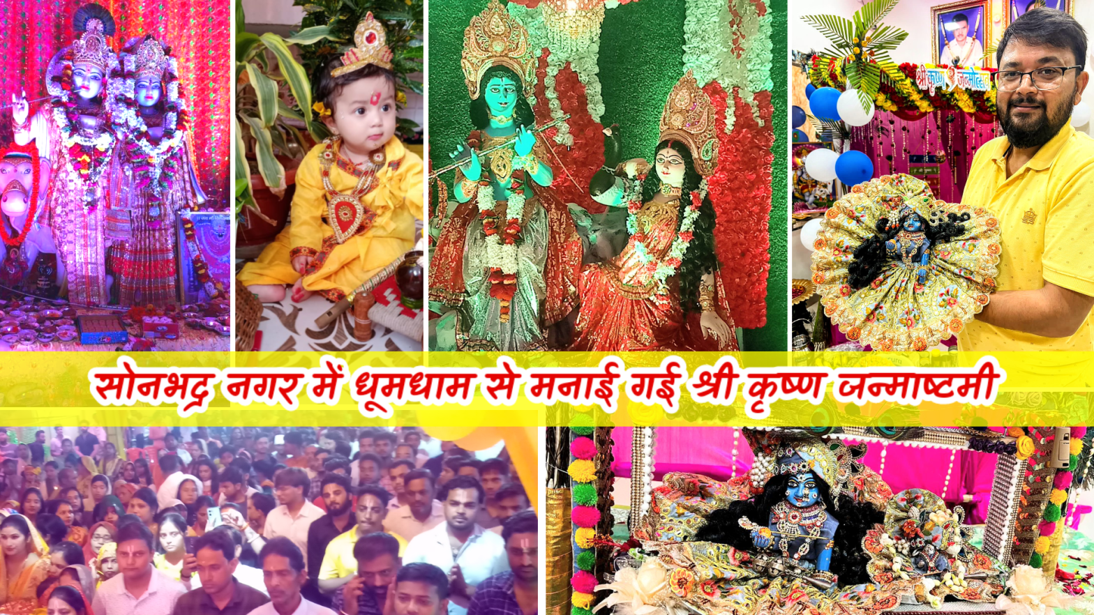 सोनभद्र। बृहस्पतिवार को जिला मुख्यालय राबर्ट्सगंज में श्री कृष्ण जन्मोत्सव बड़े ही धूमधाम से मनाया गया। इस दौरान मंदिरों, घरों में श्री कृष्ण जन्म उत्सव की भव्य झांकी सजाई गई। रात के 12:00 बजते ही पूरा नगर नंद के घर आनंद भयो, जय कन्हैया लाल की। हाथी घोड़ा पालकी, जय कन्हैया लाल की।