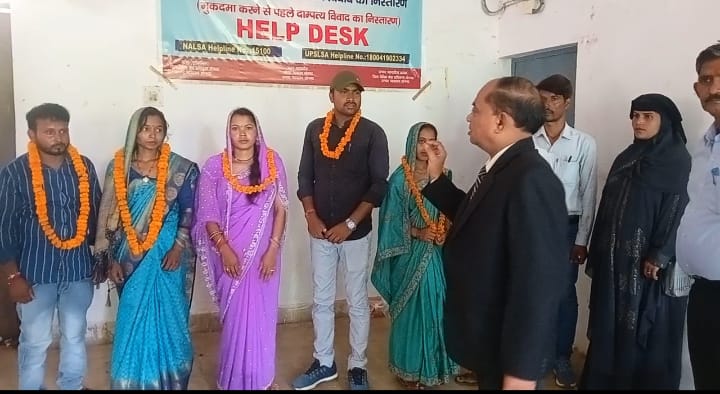 वही शनिवार को सोनभद्र जनपद में राष्ट्रीय लोक अदालत में सबकी आंखें नम हो गई। जब वर्षों से अलग रह रहे हैं वैवाहिक जोड़े ने एक दूसरे को माला पहनाकर व मिठाई खिलाकर फिर से साथ में मरने जीने की कसम खाई । परिवार न्यायालय के न्यायाधीश राजेन्द्र सिंह की इन दिनो अनोखी पहल देखने को मिली, जहा हर महीने वैवाहिक दंपति को समझकर एक दुसरे के साथ रहने के लिए कॉउंसलिंग कर विदाई करवा रहे है। उन्होंने बताया कि छोटे मोटे विवादों को तूल देने के बजाय एक दूसरे के गलतियों को नजर अंदाज करें।