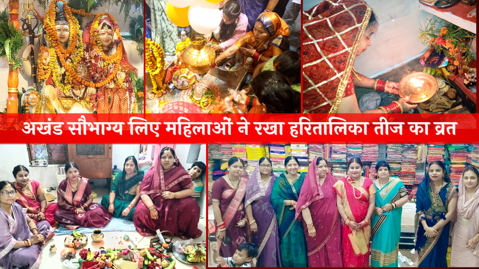 शाम को शृंगार करके विधिविधान से शिव-पार्वती का पूजन-अर्चन कर मंगल गीत गाया गया। इस अवसर पर महिलाओं ने तरह-तरह की डिजाइन की मेहंदी लगाई। साथ ही नए कपड़े व आभूषण से सज-संवर कर पूजन किया तथा व्रत की पौराणिक कथा सुनी और मंगलवार की सुबह महिलाएं इस निर्जला व्रत का परायण करेंगी।