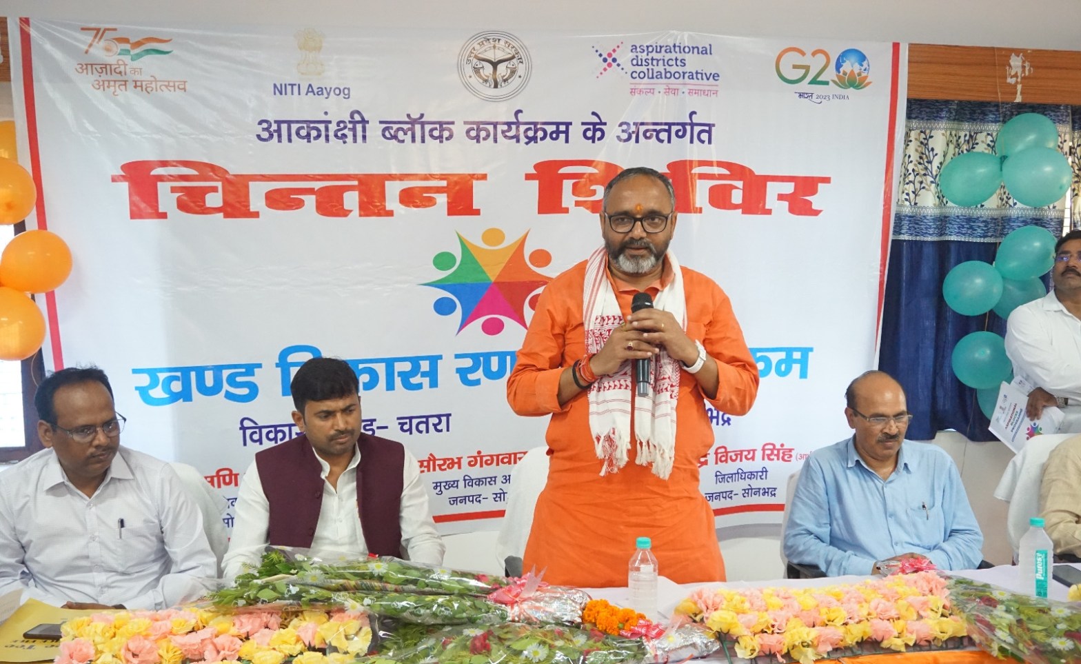 जिसमें मुख्य अतिथि सदर विधायक भूपेश चौबे की गरीमामयी उपस्थिति रही। चौबे जी ने भारत सरकार द्वारा चलाई जा रही विभिन्न योजनाओ के बारे में चिन्तन शिविर के प्रतिभागियों का अवगत कराया। चतरा ब्लाक को प्रेरक ब्लाक बनाने के क्रम में उपस्थित सभी प्रतिभागियों,विभागीय अधिकारीयों एवं कर्मचारियो को व्यवहार परिवर्तन, नवाचार, समायोजन एवं समन्वय के परिपेक्ष में अपने शब्दो से प्रोत्साहित किया।