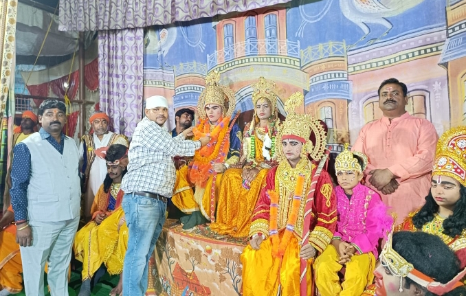 म्योरपुर,सोनभद्र। स्थानीय रामलीला मंच पर चल रहे श्रीरामलीला मंचन के बारहवाँ दिन श्रीराम राज्य तिलक का प्रसंग का लीला खेला गया लीला की शुरुवात श्रीराम शोभायात्रा के साथ हुई