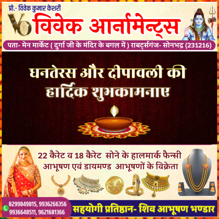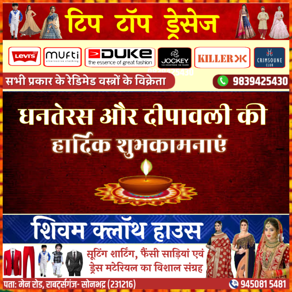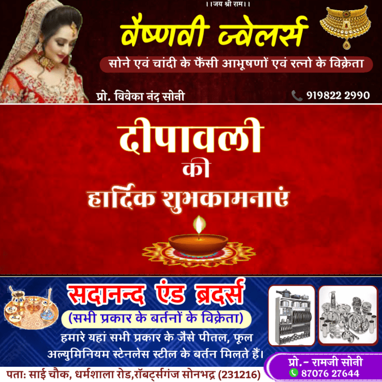सोनभद्र। दीपावली पर्व उत्तर प्रदेश के सरयू नदी के किनारे श्री राम जन्मभूमि अयोध्या से जुड़ा हुआ है।