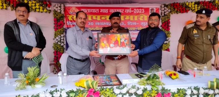 सोनभद्र। यातायात माह- नवम्बर 2023 के समापन के अवसर पर रामलीला मैदान डाला में अपर पुलिस अधीक्षक कालू सिंह द्वारा दीप प्रज्वलित कर समापन समारोह का शुभारम्भ किया गया जहां कार्यक्रम में उपस्थित सभी आमजनों से यातायात नियमों का पालन करने की अपील की गयी।