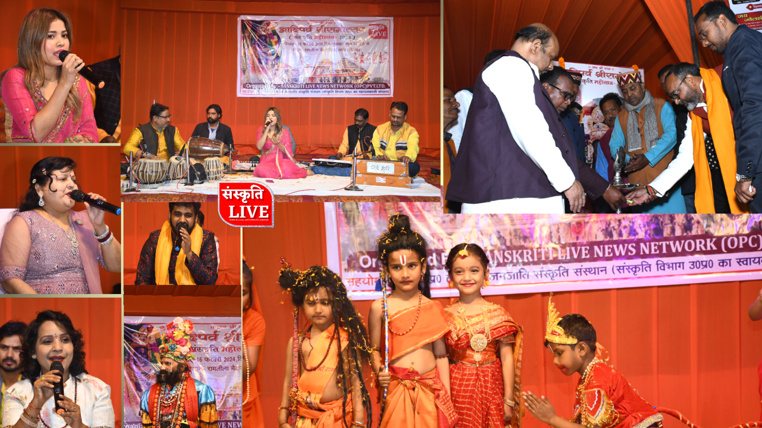 सोनभद्र। श्री राम जन्मभूमि अयोध्या पर स्थापित भव्य मंदिर में रामलला के बाल विग्रह मूर्ति की स्थापना, प्राण- प्रतिष्ठा के उपलक्ष में संस्कृति लाइव न्यूज नेटवर्क व उत्तर प्रदेश लोक एवं जनजाति संस्कृति संस्थान के सहयोग से जनपद मुख्यालय रॉबर्ट्सगंज के श्री रामलीला मैदान में संस्कृति महोत्सव के अंतर्गत आदि पर्व श्री रामोत्सव कार्यक्रम का भव्य आयोजन शुक्रवार को हुआ जो देर रात तक चलता रहा।