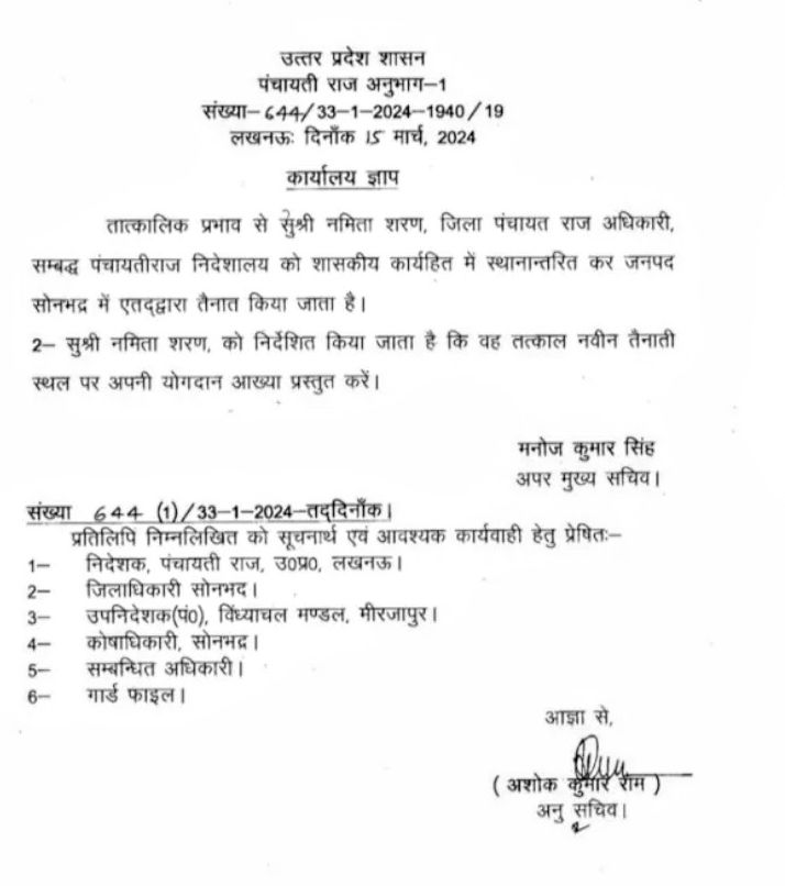 ➡नमिता शरण बनाई गयी जिला पंचायत राज अधिकारी