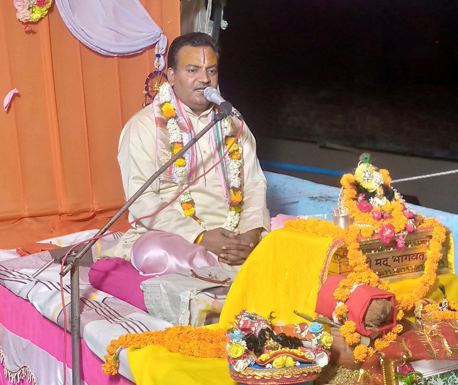 भगवान श्री कृष्ण एवं रुक्मणी के विवाह प्रसंग पर चर्चा करते हुए कहा कि-” भगवान श्रीकृष्ण ने सभी राजाओं को हराकर विदर्भ की राजकुमारी रुक्मिणी को द्वारिका में लाकर उनका विधिपूर्वक पाणिग्रहण किया । कथा के साथ-साथ संगीतमय भजन, आरती हवन मे प्रतिभा देवी, रीना गुप्ता, गुलाबी देवी, आशा देवी, माधुरी, अंजू,चंदन सोनी, सन्नू सोनी, सहित सभी भक्तों ने भाग लिया
