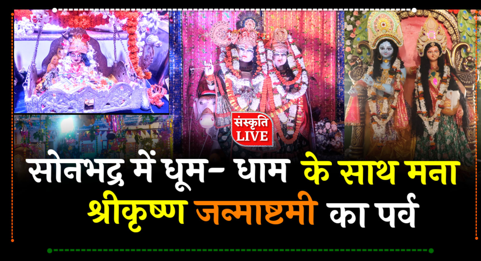 बतादें कि चुर्क पुलिस लाइन, जिला कारागार सहित जिले के हर थानों में श्री कृष्ण जन्म उत्सव धूमधाम के साथ गया।वही जनपद मुख्यालय रॉबर्ट्सगंज नगर स्थित श्री बांके बिहारी मंदिर में श्री कृष्ण जन्म उत्सव की भव्य झांकी सजाई गई इस दौरान भजन कीर्तन बिरहा का आयोजन किया गया और इसके पश्यात भक्तों ने प्रसाद ग्रहण किया।