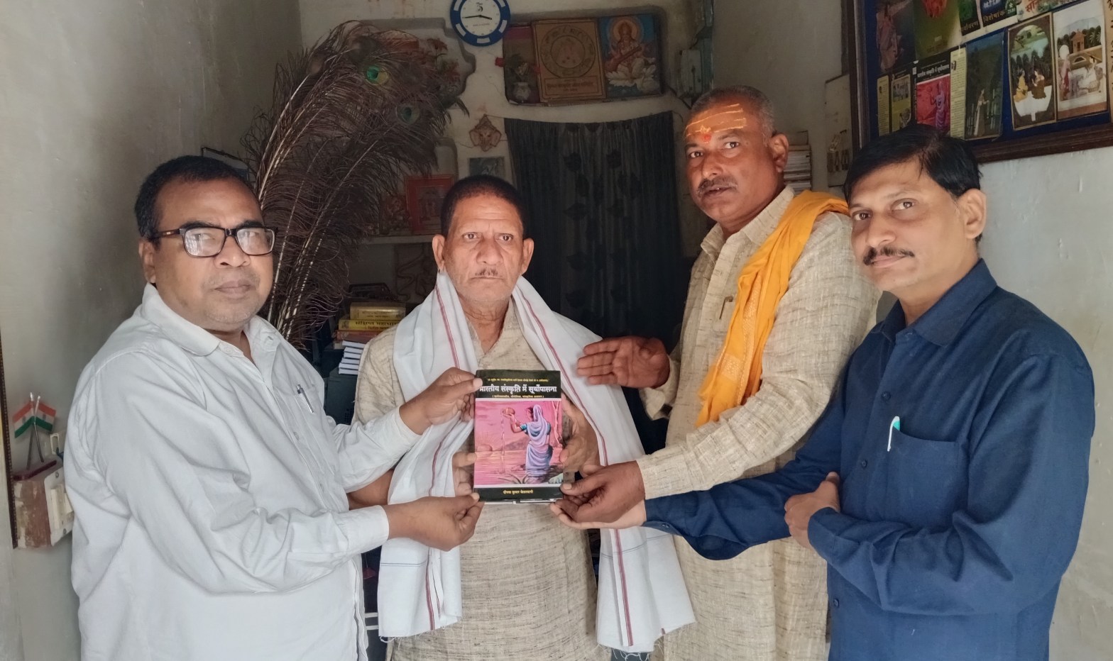 सोनभद्र। भोजपुरी शोध संस्थान उत्तर प्रदेश के निदेशक एवं राजकीय स्नातकोत्तर महाविद्यालय ओबरा के पूर्व प्राचार्य डॉक्टर सुधाकर तिवारी द्वारा भोजपुरी भाषा मे साहित्य लेखन, देश- विदेश मे प्रचार- प्रसार, भाषाई संरक्षण के लिए संस्कृति,साहित्य, कला के क्षेत्र में अनवरत रूप से कार्यरत विंध्य संस्कृति शोध समिति उत्तर प्रदेश ट्रस्ट के प्रधान कार्यालय पर ट्रस्ट के निदेशक/ इतिहासकार दीपक कुमार केसरवानी द्वारा अंगवस्त्रम, स्वरचित कृति प्रदान कर सम्मानित किया गया।